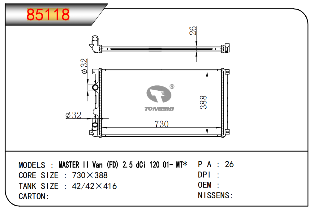 適用于寶馬 E30 320 i 82-93 AT散熱器OEM:1723 825/1719 261
