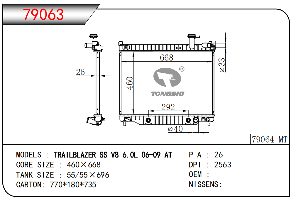 適用于奇瑞瑞虎(新款) MT散熱器 OEM : F1301000B1