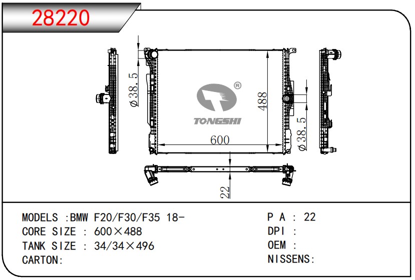 適用于寶馬 E30 320 i 82-93 AT散熱器OEM:1723 825/1719 261