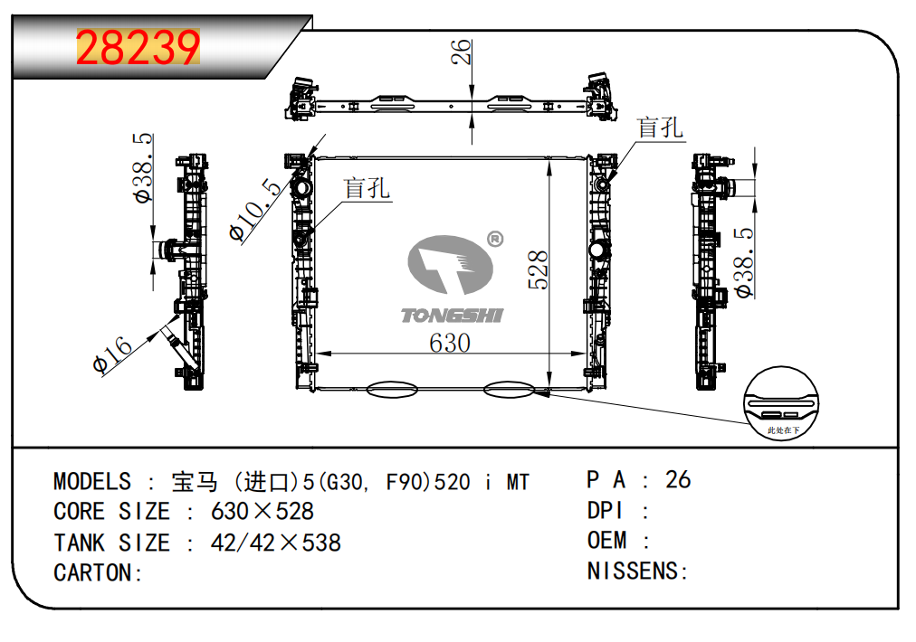 適用于寶馬 E30 320 i 82-93 AT散熱器OEM:1723 825/1719 261