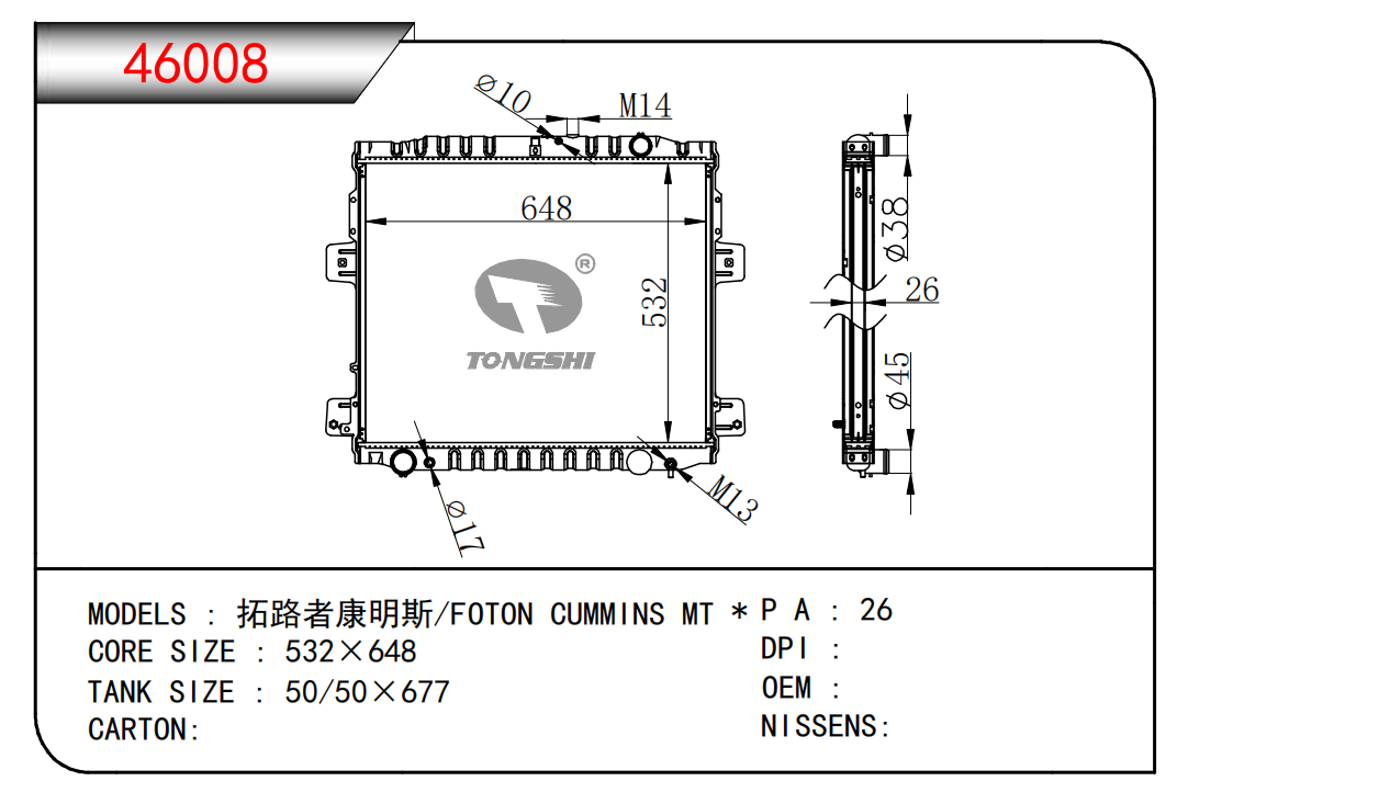 適用于奇瑞瑞虎(新款) MT散熱器 OEM : F1301000B1