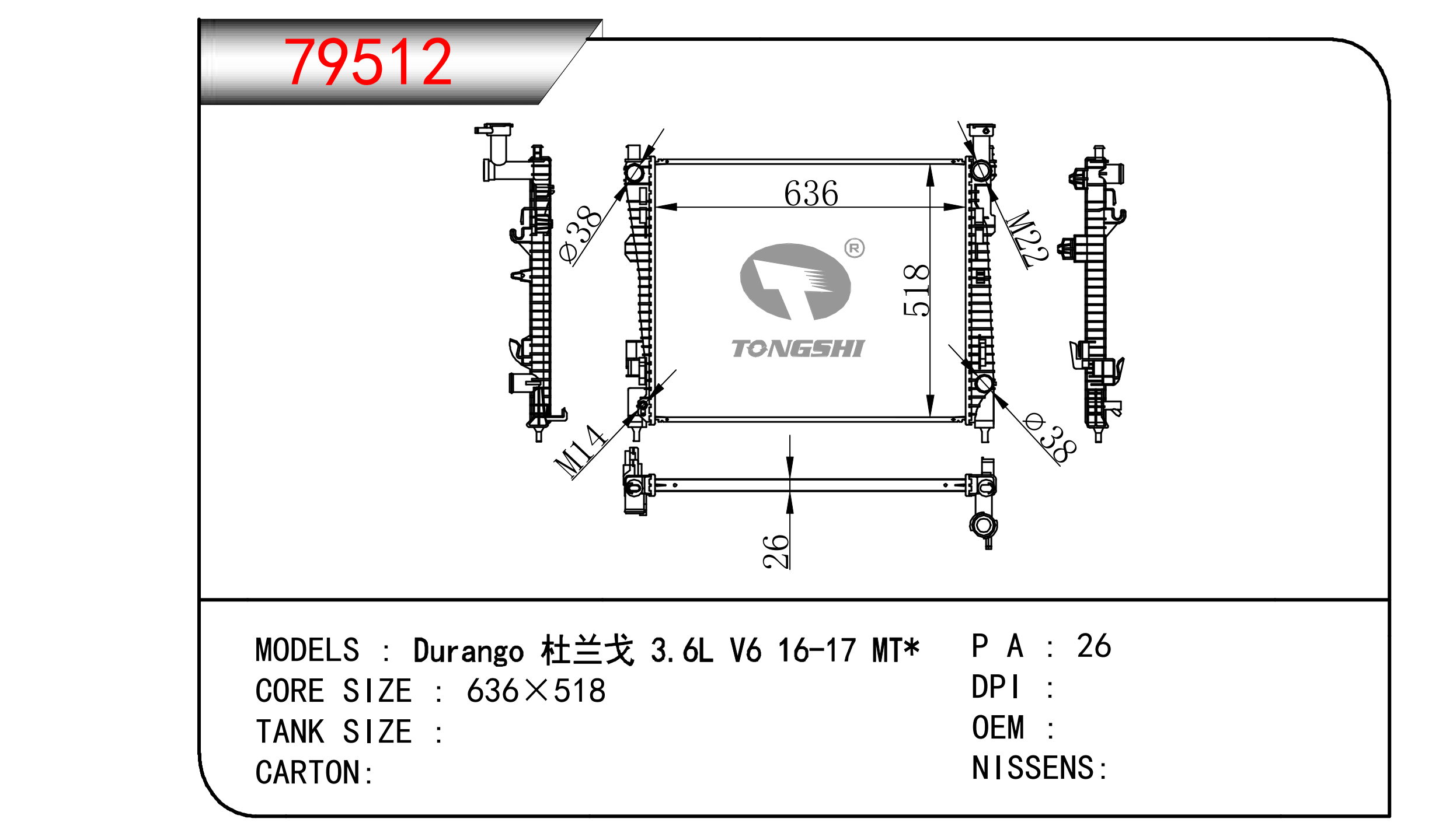 適用于奇瑞瑞虎(新款) MT散熱器 OEM : F1301000B1