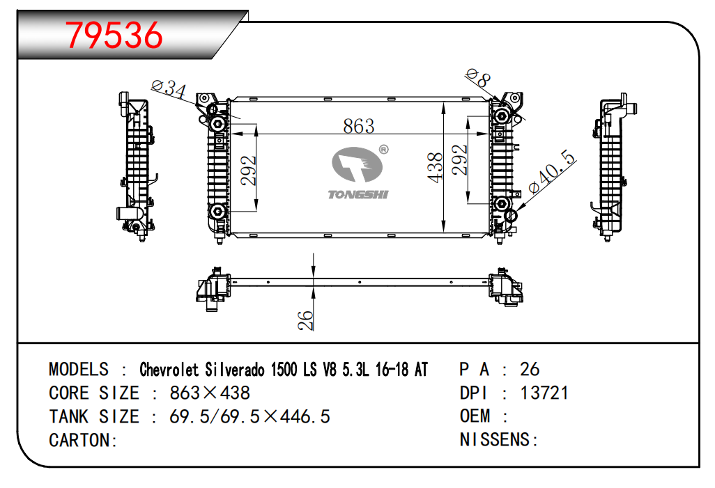 適用于奇瑞瑞虎(新款) MT散熱器 OEM : F1301000B1
