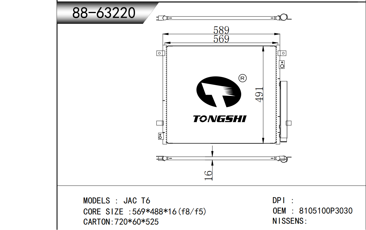 適用于奇瑞瑞虎(新款) MT散熱器 OEM : F1301000B1