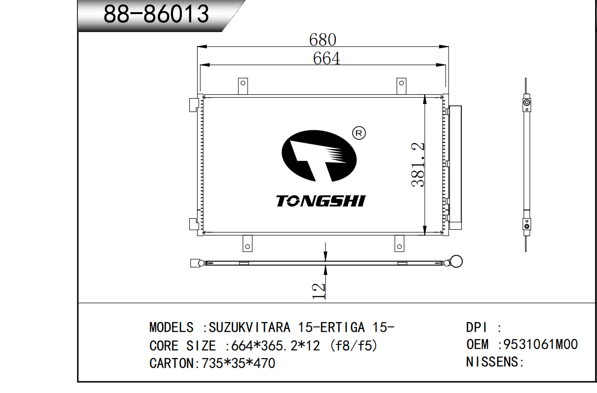 適用于奇瑞瑞虎(新款) MT散熱器 OEM : F1301000B1