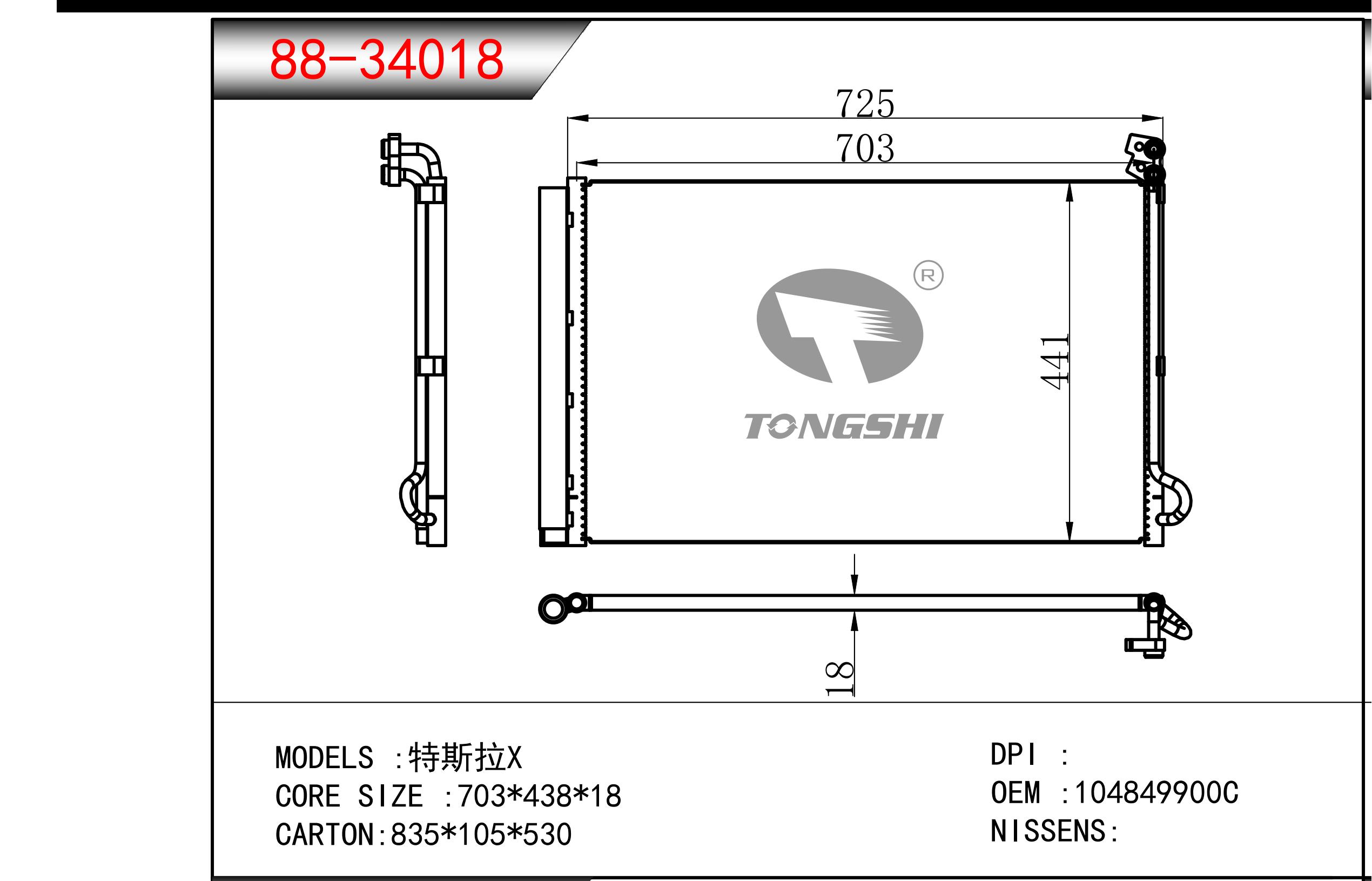 適用于奇瑞瑞虎(新款) MT散熱器 OEM : F1301000B1