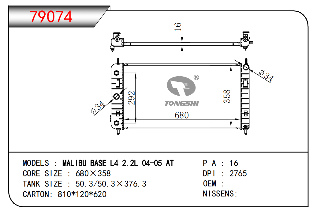 適用于奇瑞瑞虎(新款) MT散熱器 OEM : F1301000B1