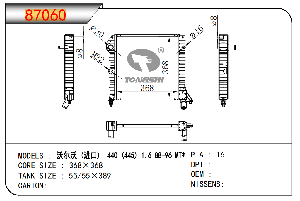 適用于寶馬 E30 320 i 82-93 AT散熱器OEM:1723 825/1719 261