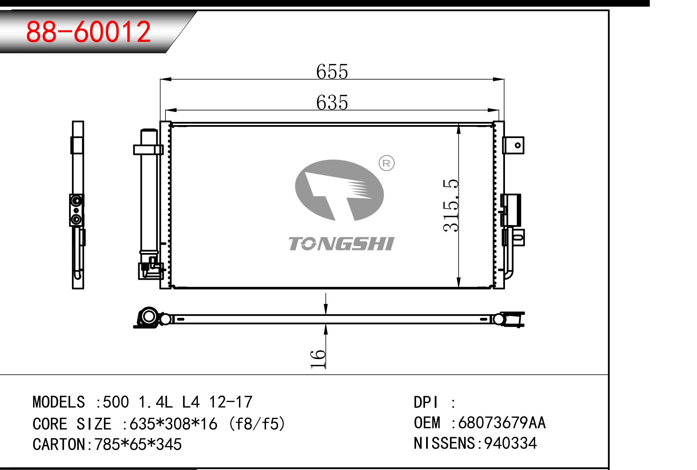 適用于奇瑞瑞虎(新款) MT散熱器 OEM : F1301000B1
