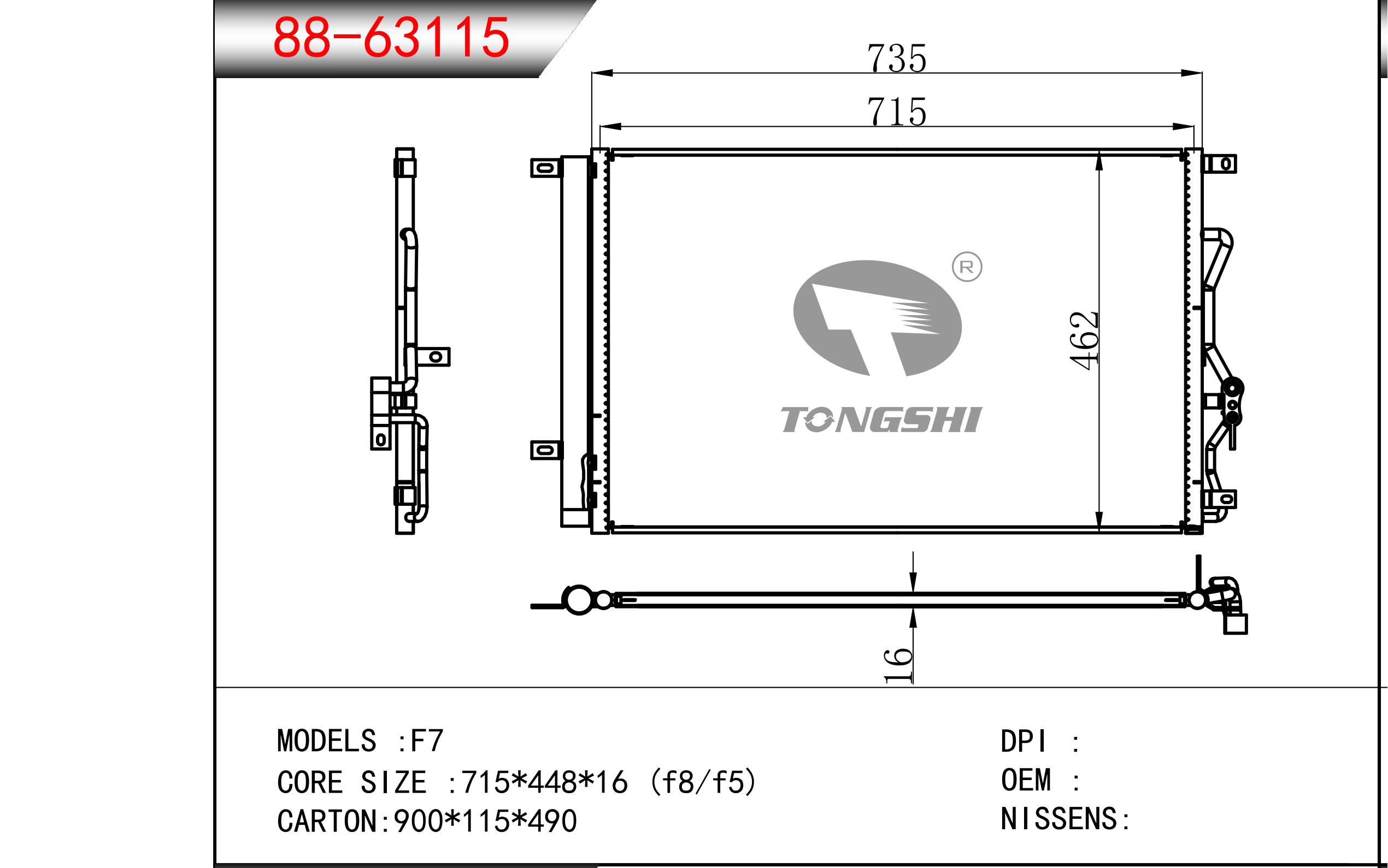 適用于奇瑞瑞虎(新款) MT散熱器 OEM : F1301000B1