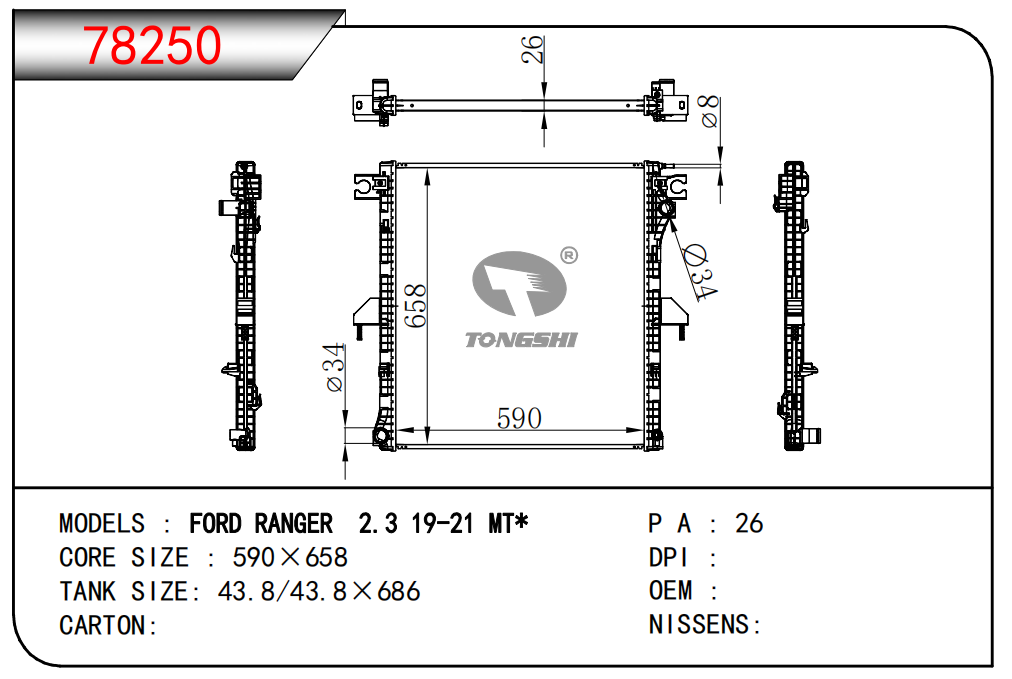 適用于奇瑞瑞虎(新款) MT散熱器 OEM : F1301000B1