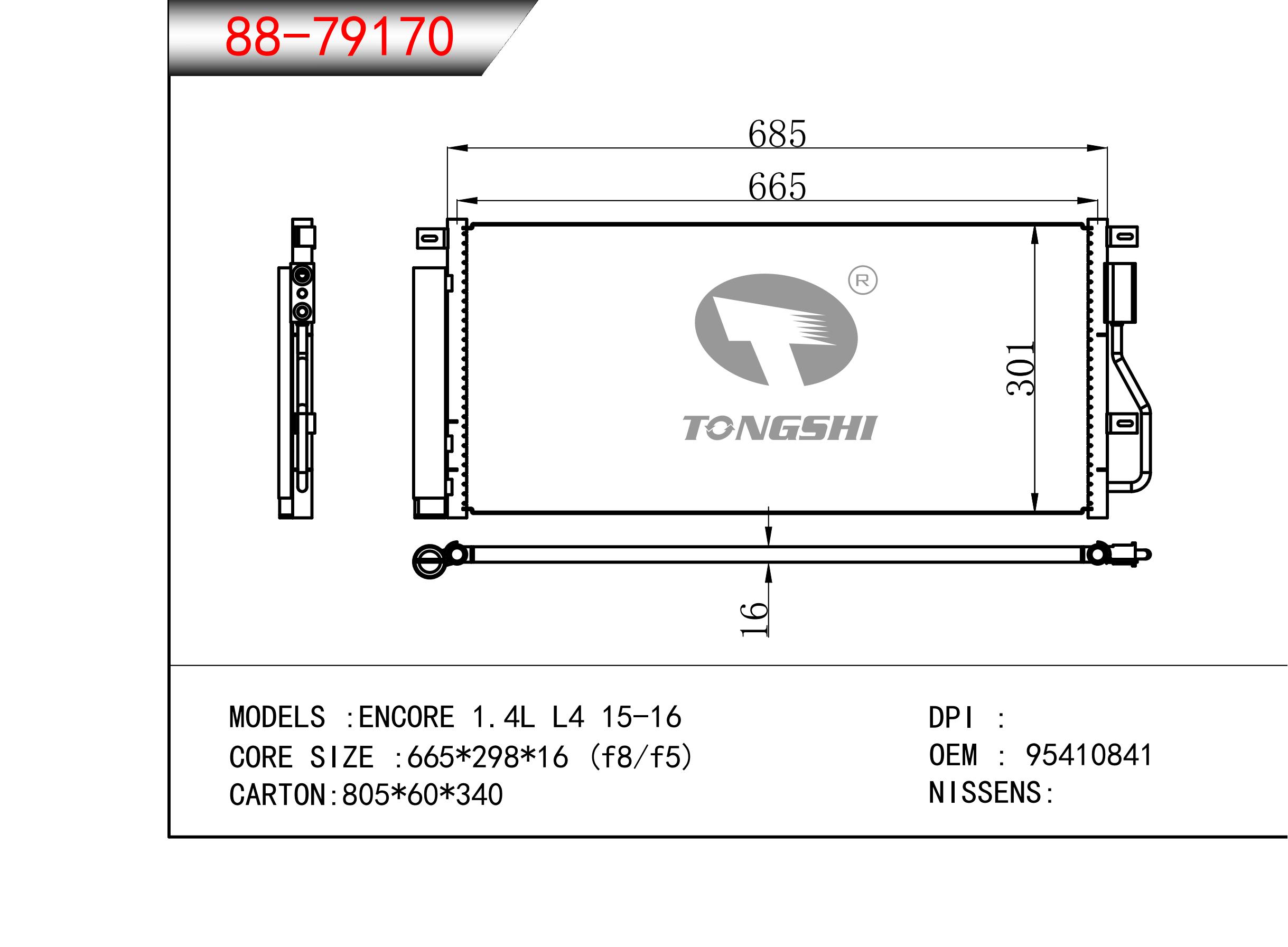 適用于奇瑞瑞虎(新款) MT散熱器 OEM : F1301000B1