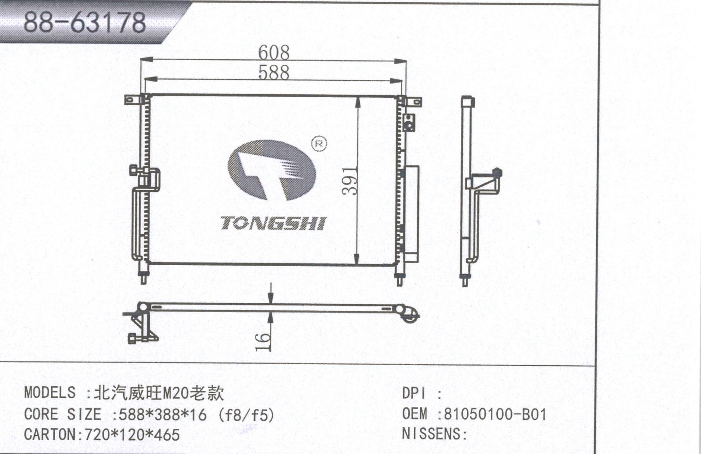 適用于奇瑞瑞虎(新款) MT散熱器 OEM : F1301000B1
