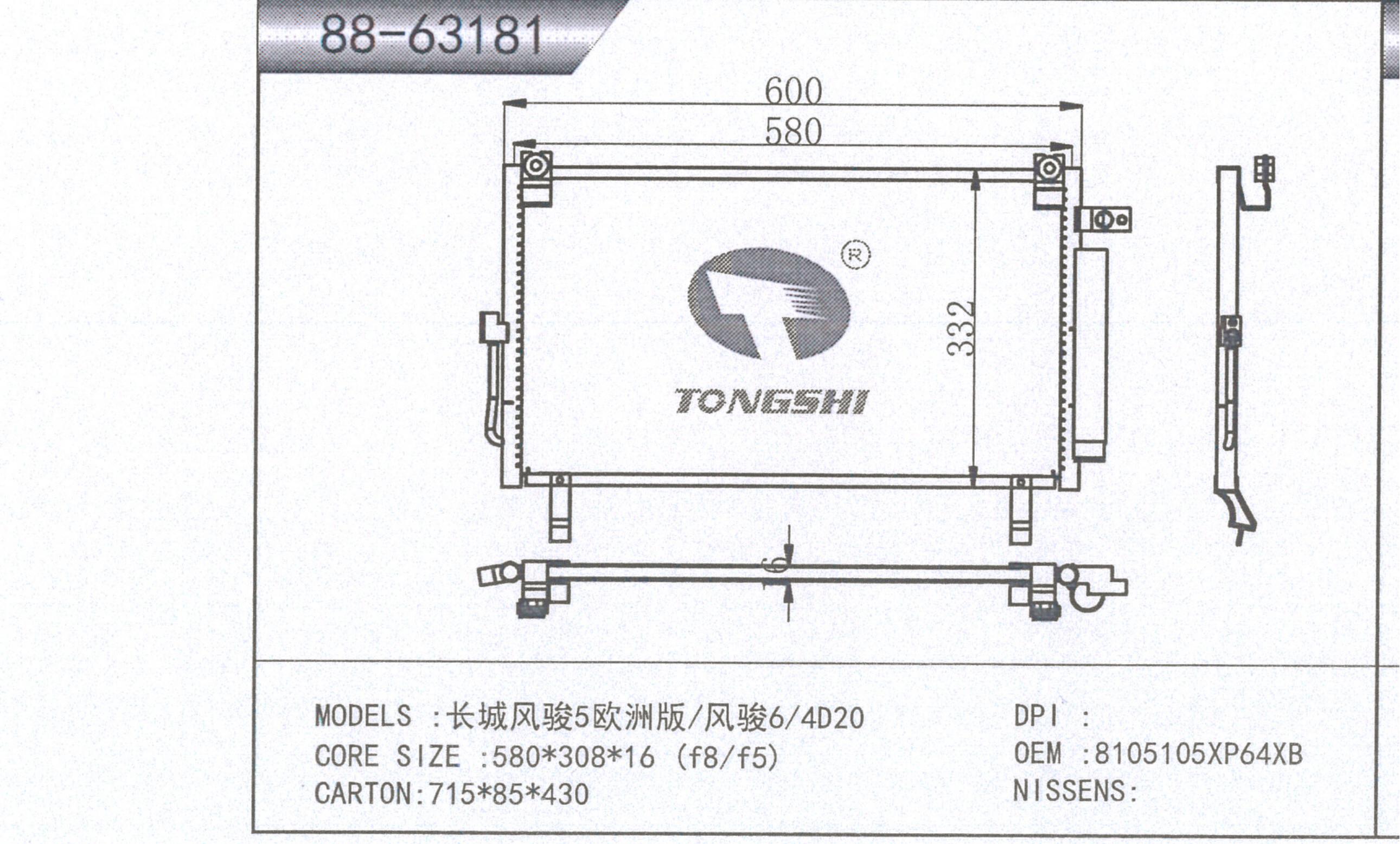 適用于奇瑞瑞虎(新款) MT散熱器 OEM : F1301000B1