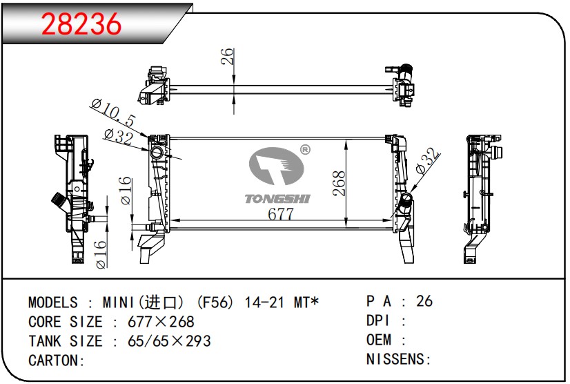 適用于寶馬 E30 320 i 82-93 AT散熱器OEM:1723 825/1719 261