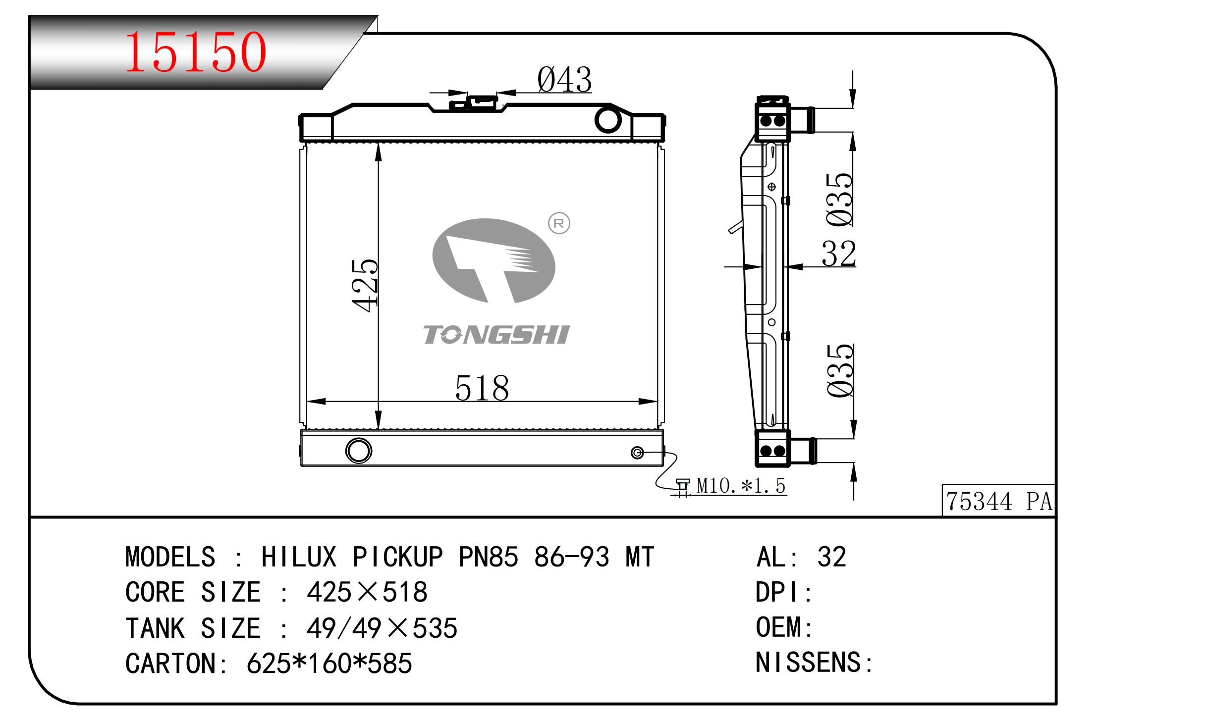 適用于寶馬 E30 320 i 82-93 AT散熱器OEM:1723 825/1719 261