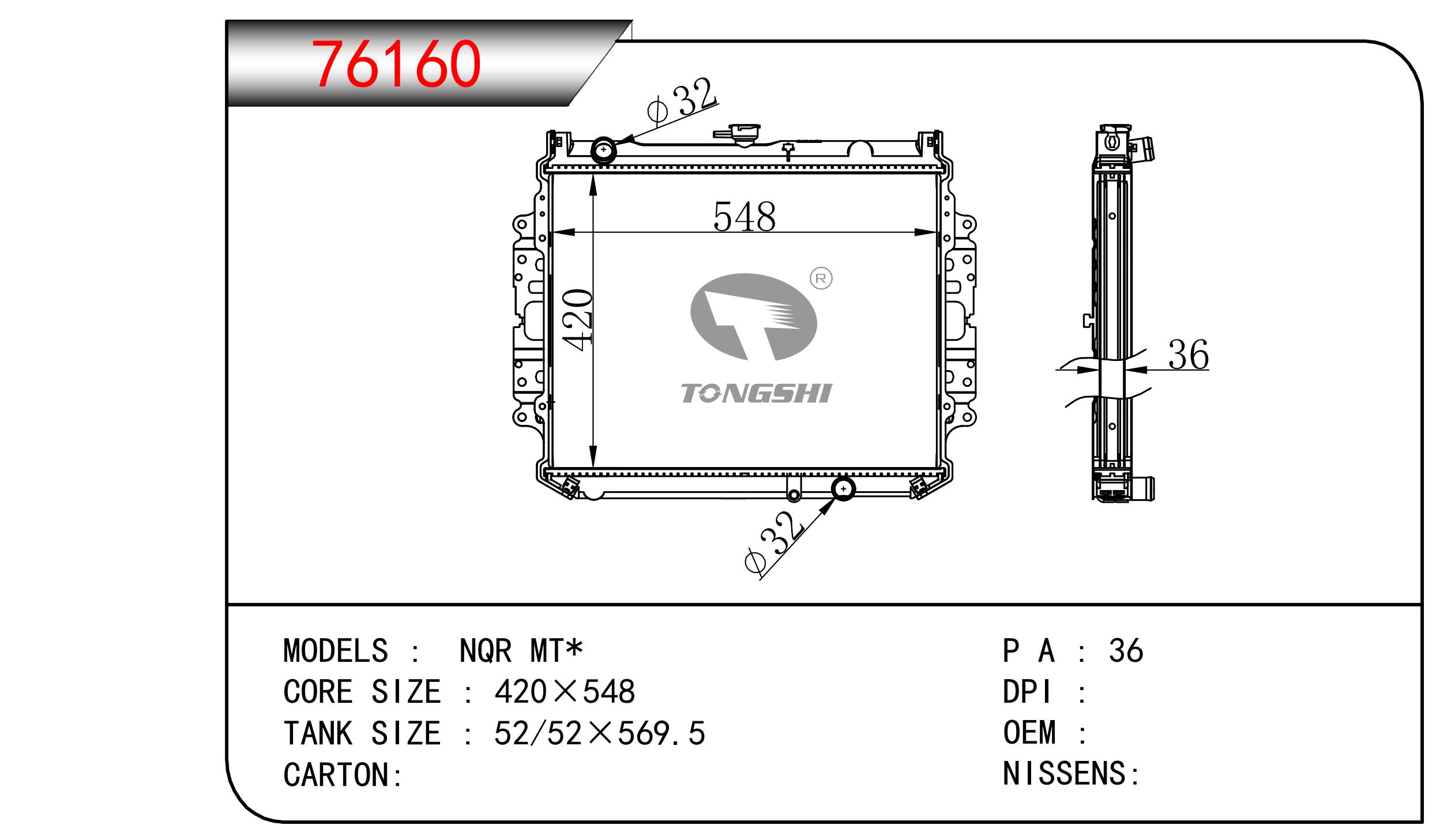 適用于奇瑞瑞虎(新款) MT散熱器 OEM : F1301000B1