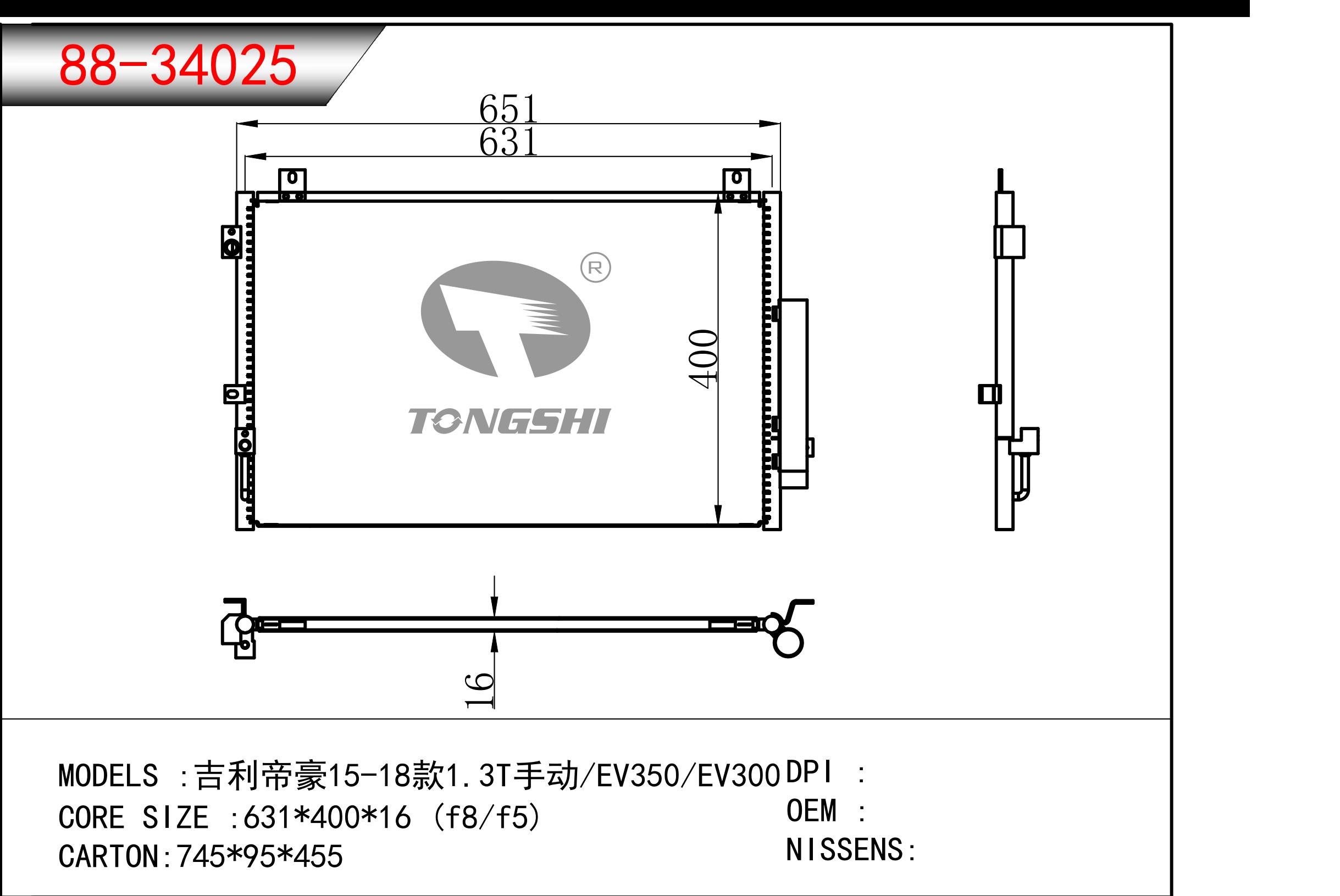 適用于奇瑞瑞虎(新款) MT散熱器 OEM : F1301000B1