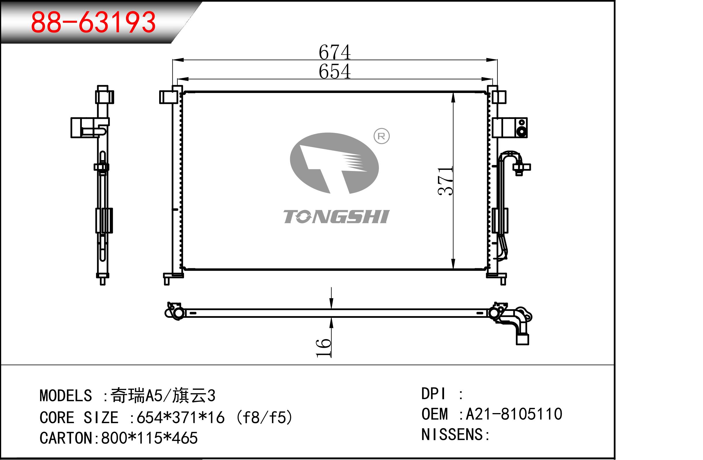 適用于奇瑞瑞虎(新款) MT散熱器 OEM : F1301000B1