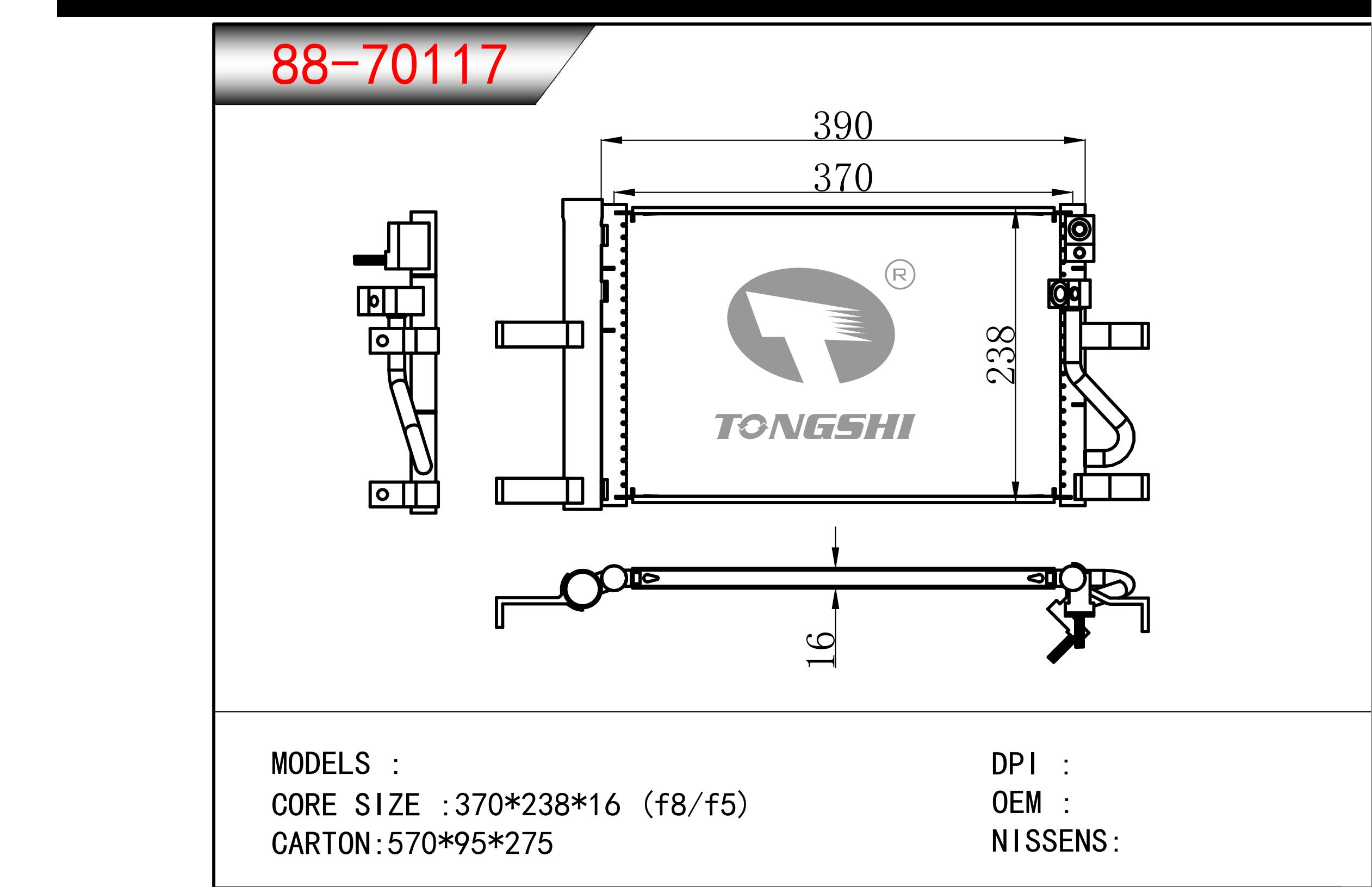 適用于奇瑞瑞虎(新款) MT散熱器 OEM : F1301000B1