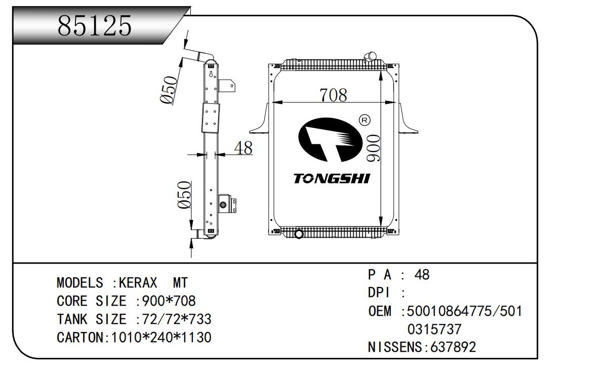 適用于TRUCK FREIGHTLINER CASCADIA 125/113 L6 12.8L OEM:0526614088/0526619010/0526619022/0526619024/0524937002/0526621002