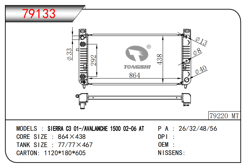 適用于奇瑞瑞虎(新款) MT散熱器 OEM : F1301000B1
