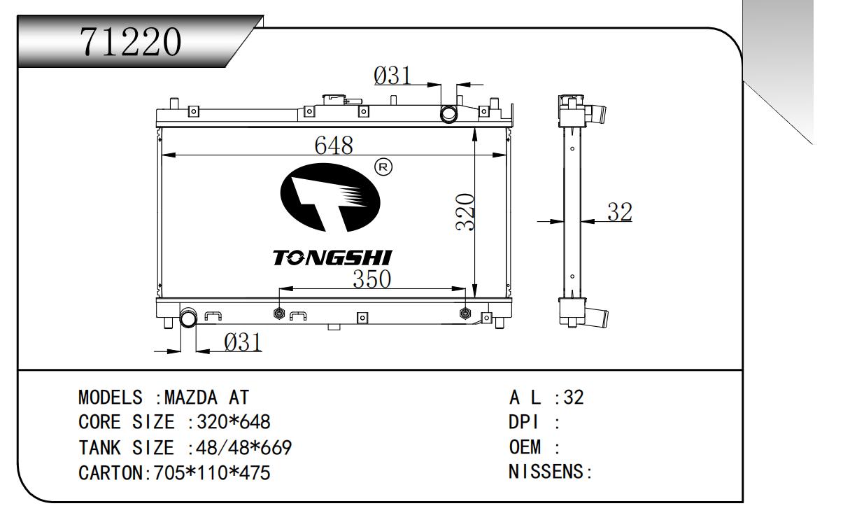 適用于奇瑞瑞虎(新款) MT散熱器 OEM : F1301000B1