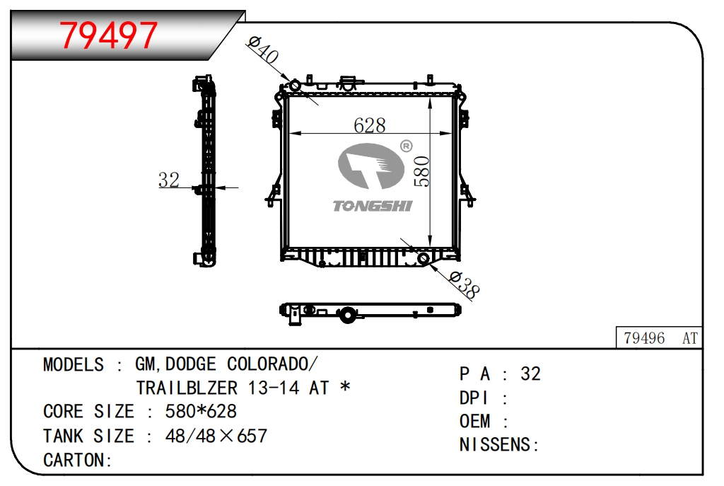 適用于寶馬 E30 320 i 82-93 AT散熱器OEM:1723 825/1719 261
