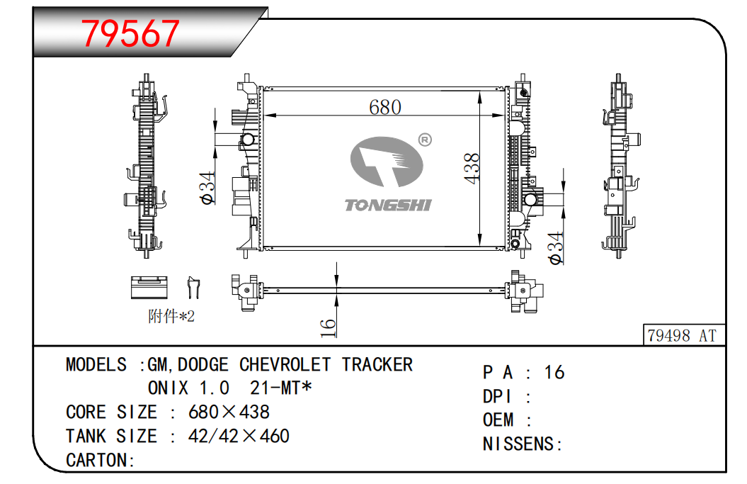 適用于奇瑞瑞虎(新款) MT散熱器 OEM : F1301000B1