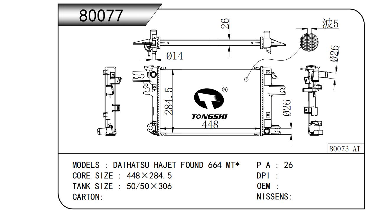 適用于奇瑞瑞虎(新款) MT散熱器 OEM : F1301000B1