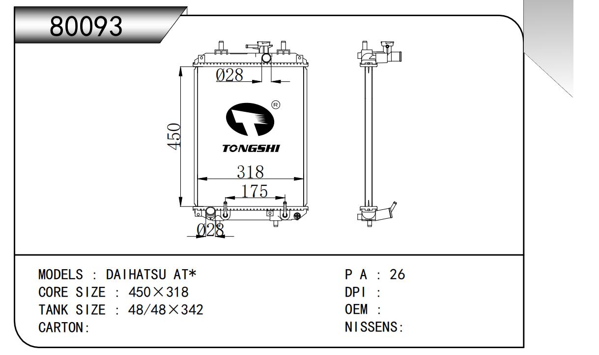 適用于寶馬 E30 320 i 82-93 AT散熱器OEM:1723 825/1719 261