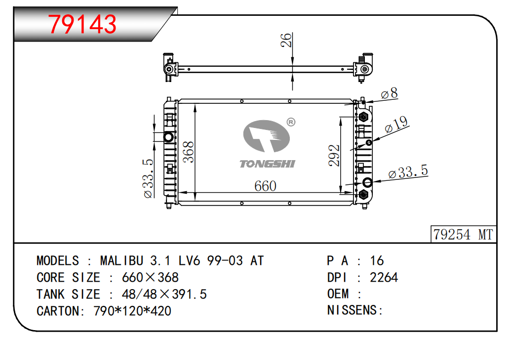 適用于奇瑞瑞虎(新款) MT散熱器 OEM : F1301000B1