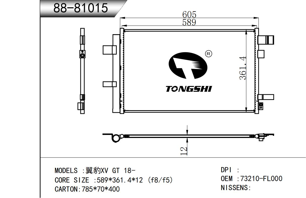 適用于奇瑞瑞虎(新款) MT散熱器 OEM : F1301000B1