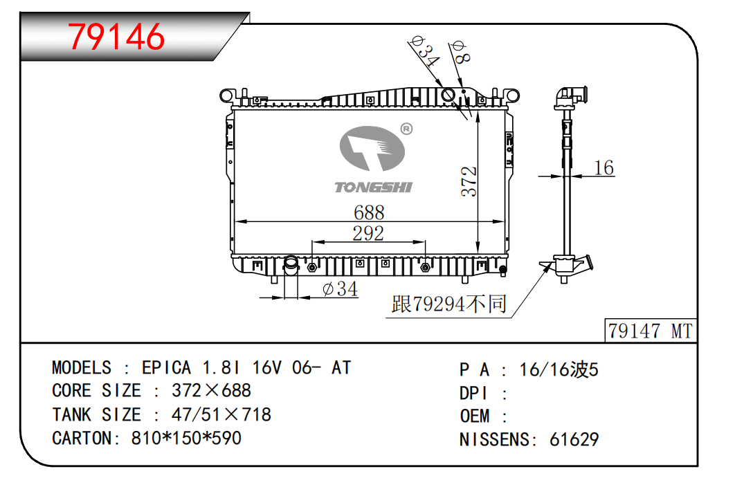 適用于奇瑞瑞虎(新款) MT散熱器 OEM : F1301000B1