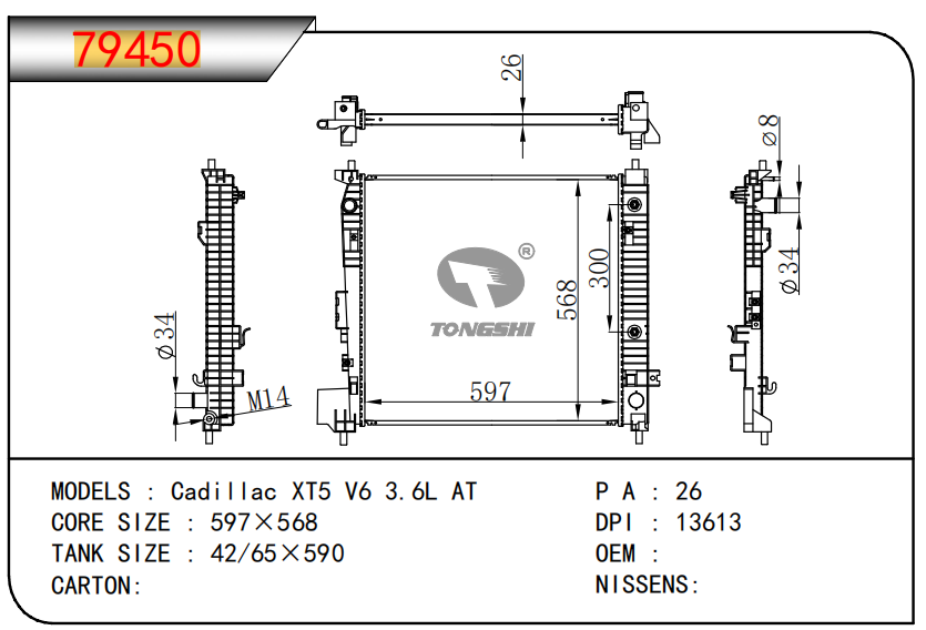適用于奇瑞瑞虎(新款) MT散熱器 OEM : F1301000B1