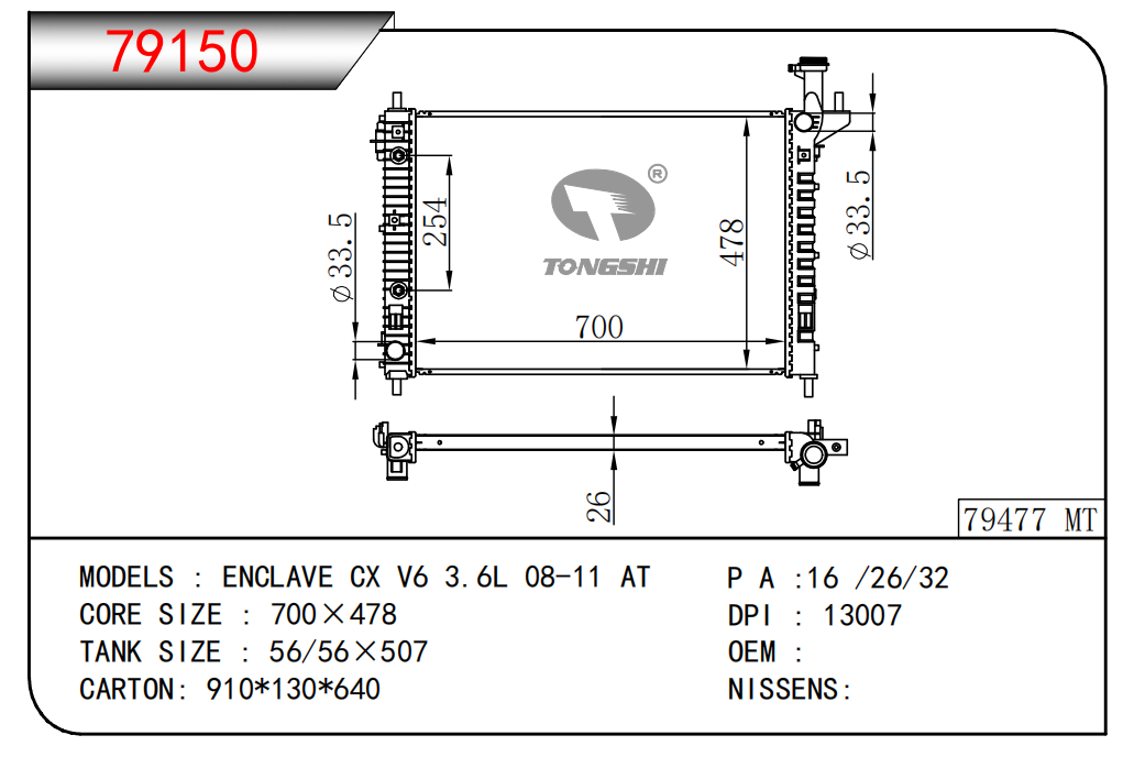 適用于奇瑞瑞虎(新款) MT散熱器 OEM : F1301000B1