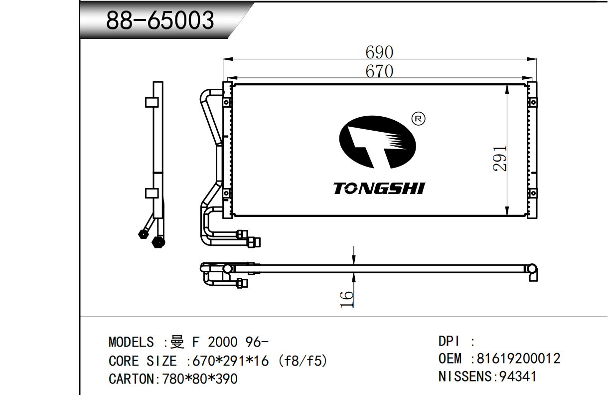適用于奇瑞瑞虎(新款) MT散熱器 OEM : F1301000B1