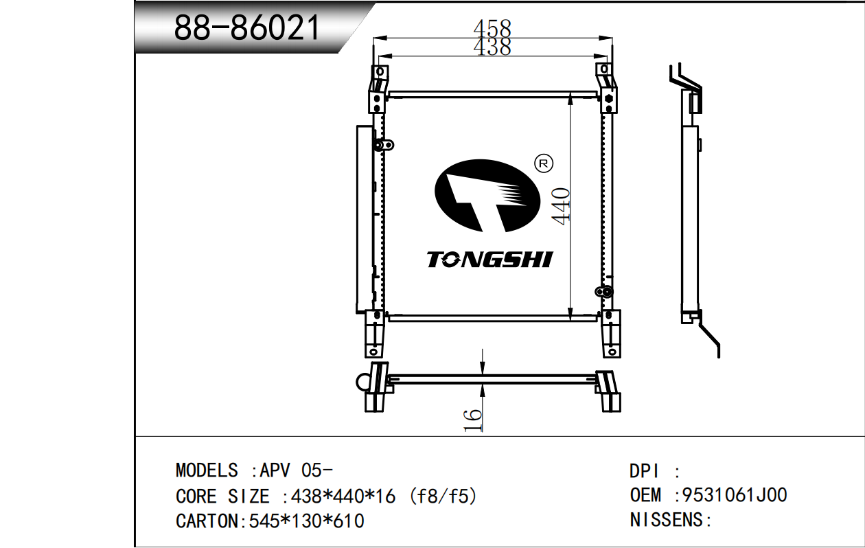 適用于奇瑞瑞虎(新款) MT散熱器 OEM : F1301000B1