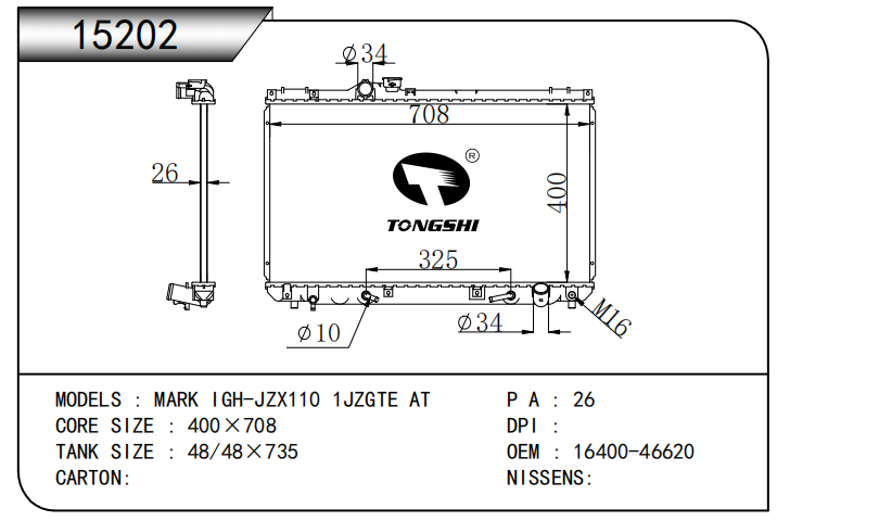 適用于奇瑞瑞虎(新款) MT散熱器 OEM : F1301000B1