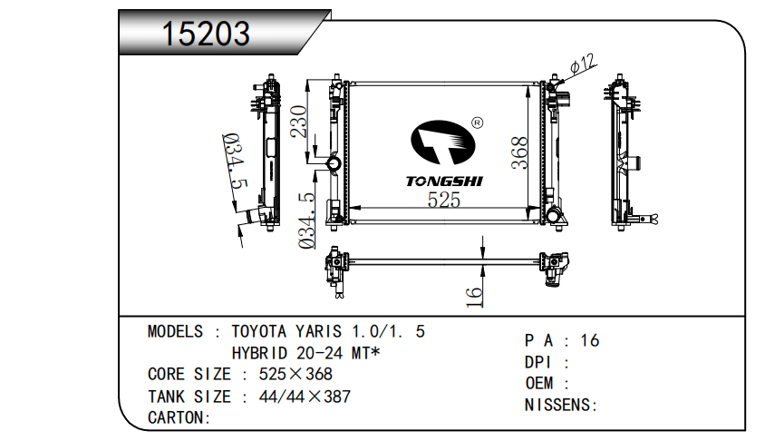 適用于奇瑞瑞虎(新款) MT散熱器 OEM : F1301000B1