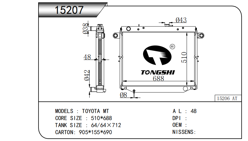 適用于奇瑞瑞虎(新款) MT散熱器 OEM : F1301000B1