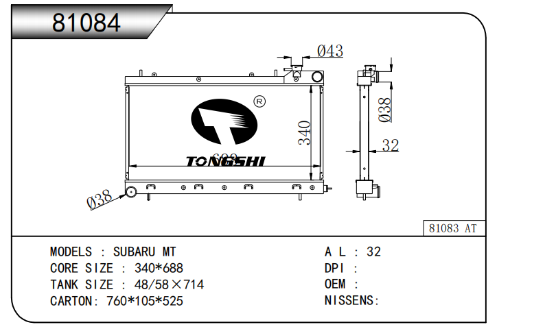 適用于寶馬 E30 320 i 82-93 AT散熱器OEM:1723 825/1719 261