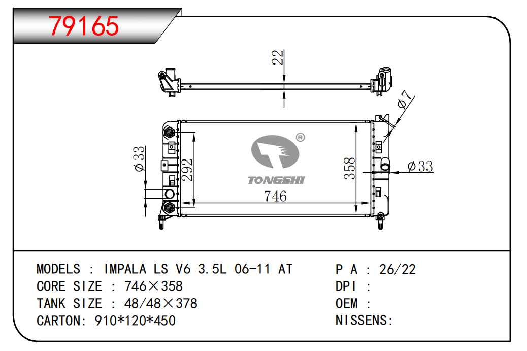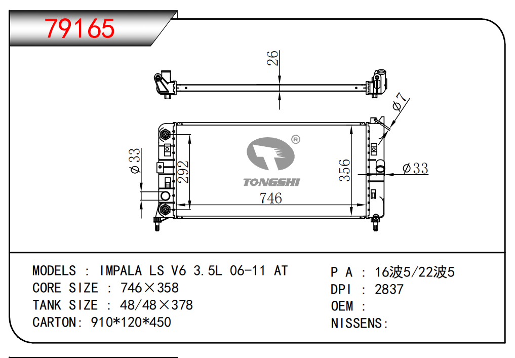 適用于奇瑞瑞虎(新款) MT散熱器 OEM : F1301000B1