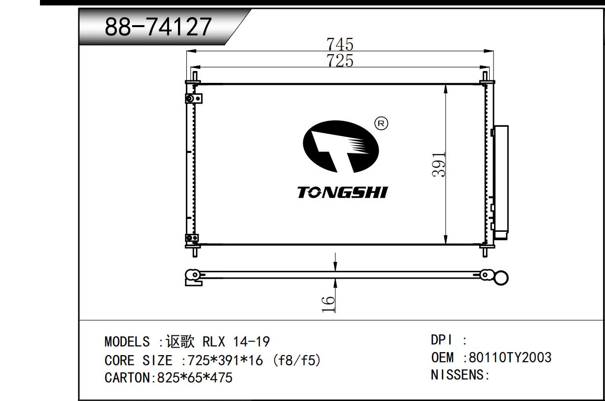 適用于奇瑞瑞虎(新款) MT散熱器 OEM : F1301000B1