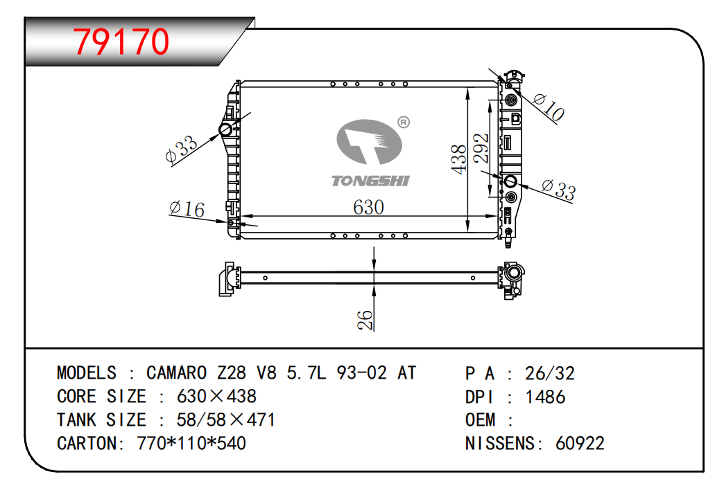 適用于寶馬 E30 320 i 82-93 AT散熱器OEM:1723 825/1719 261