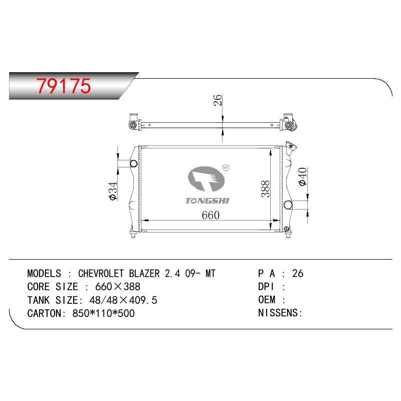 適用于奇瑞瑞虎(新款) MT散熱器 OEM : F1301000B1