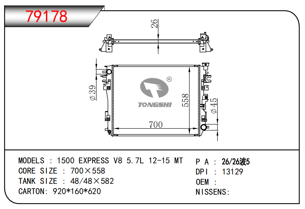 適用于奇瑞瑞虎(新款) MT散熱器 OEM : F1301000B1