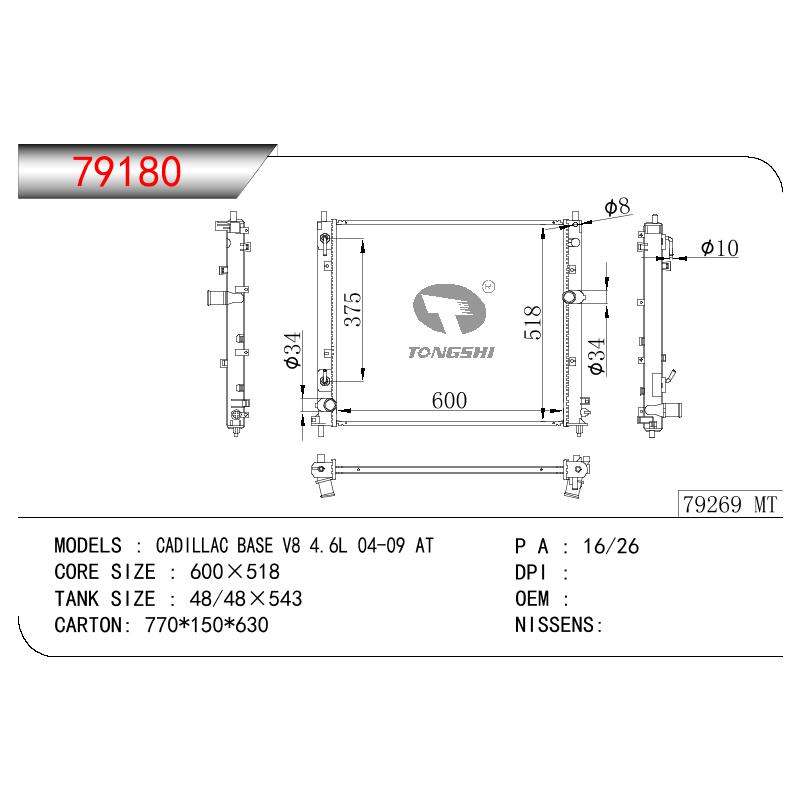 適用于奇瑞瑞虎(新款) MT散熱器 OEM : F1301000B1