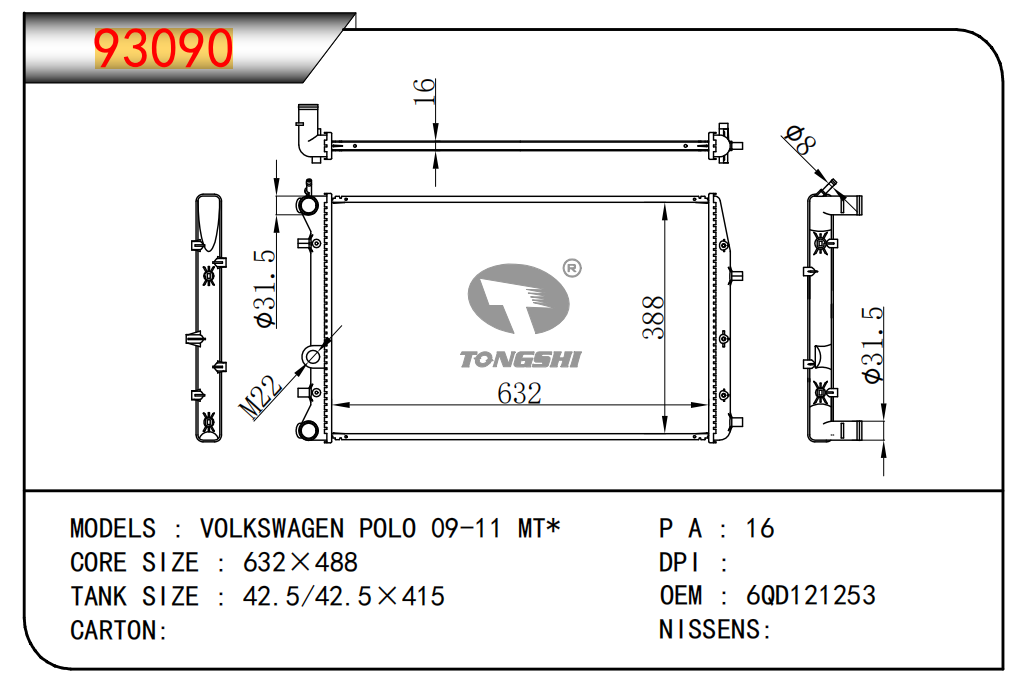 適用于寶馬 E30 320 i 82-93 AT散熱器OEM:1723 825/1719 261