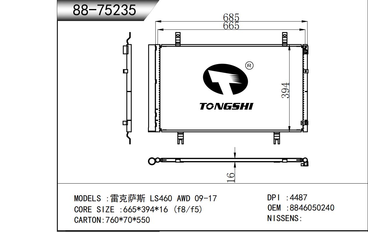 適用于奇瑞瑞虎(新款) MT散熱器 OEM : F1301000B1